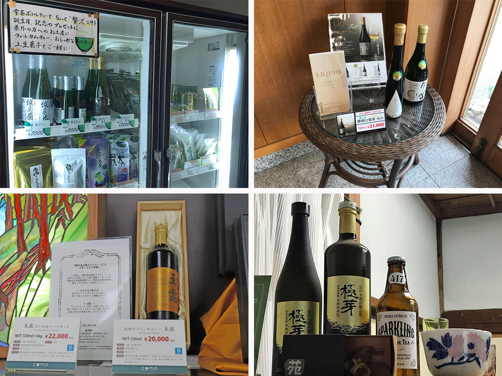 ▲Examples of luxury bottled teas include ‘Hakuyou Hon-yama’ by Chatsuutei, ‘Makinohara Shizuku-cha’ by Takayanagi Seicha, ‘Gyokuro’ by Yabusaki-en, and ‘Gokume’ by Yamahiraen.